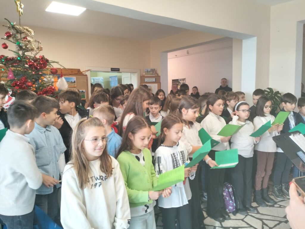 Momentul a fost marcat emoțional de colindele din jurul bradului cântate de către grupul de elevi din clasele 3-5, Școala generală „Nicolae Iorga”.